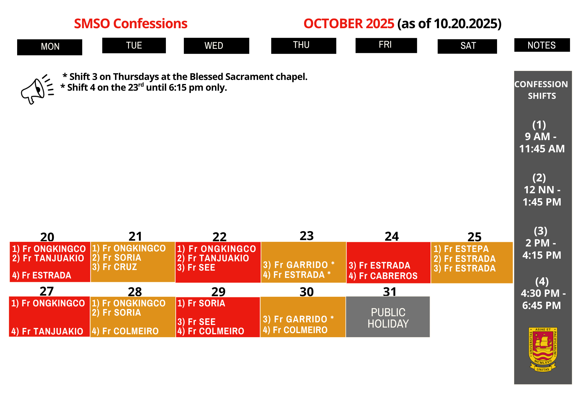 Latin Mass every Friday of the month except on the 4th Friday Filipino (Tagalog) Mass