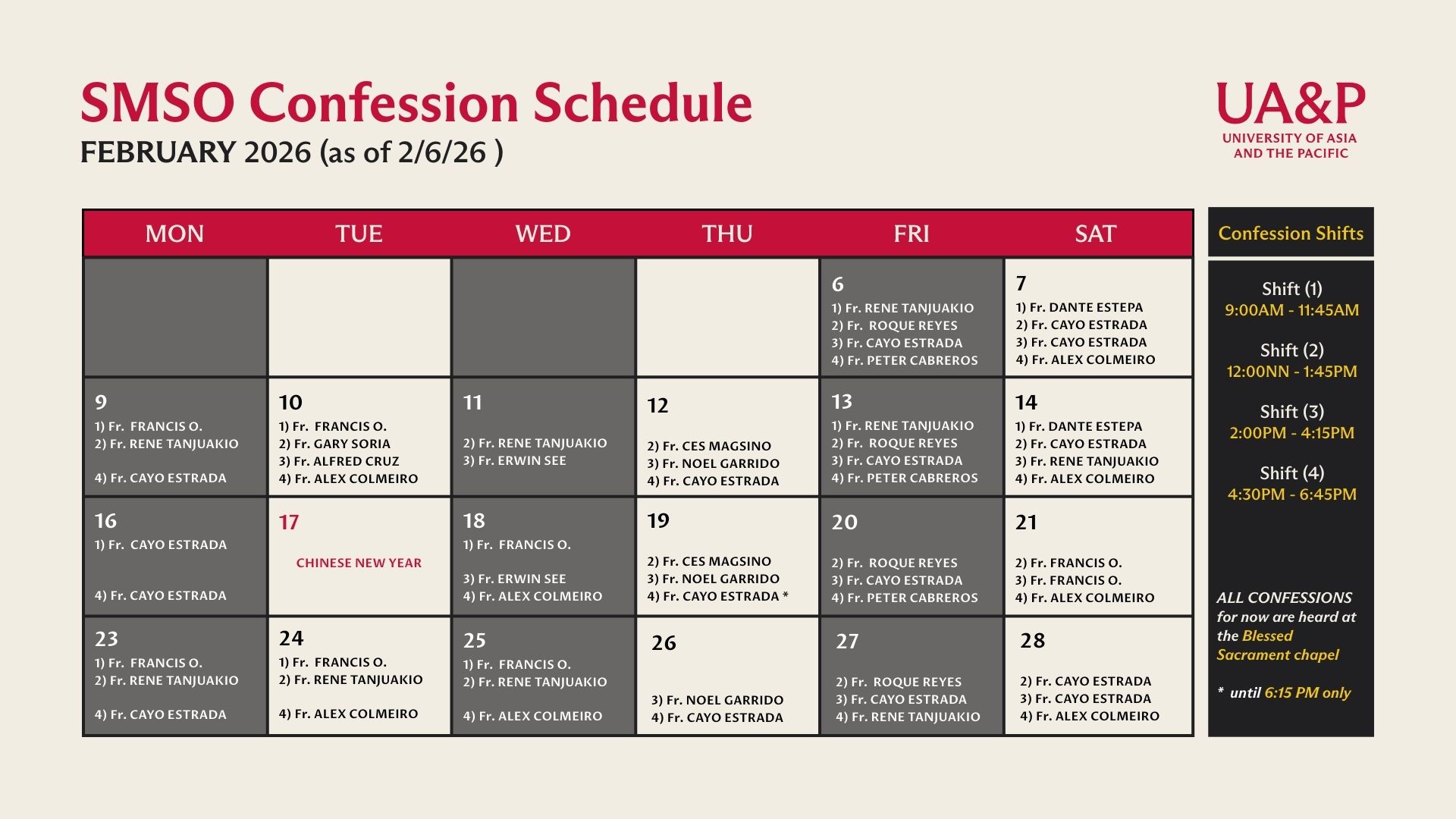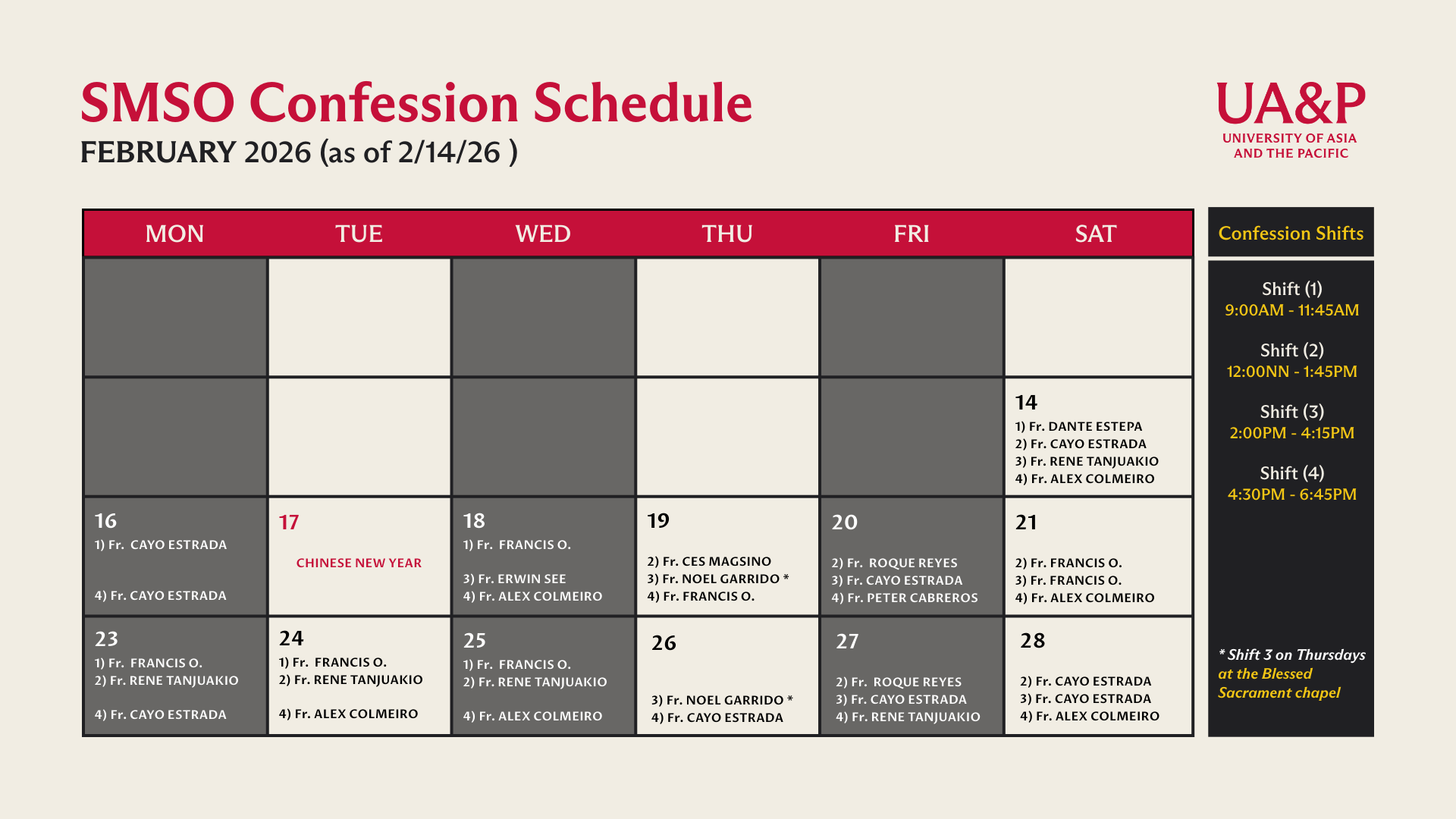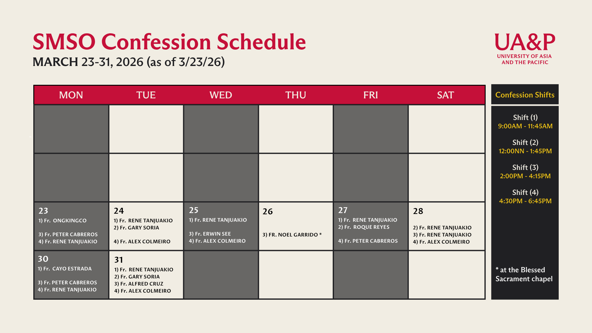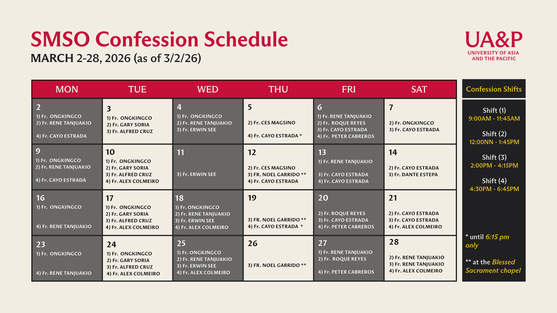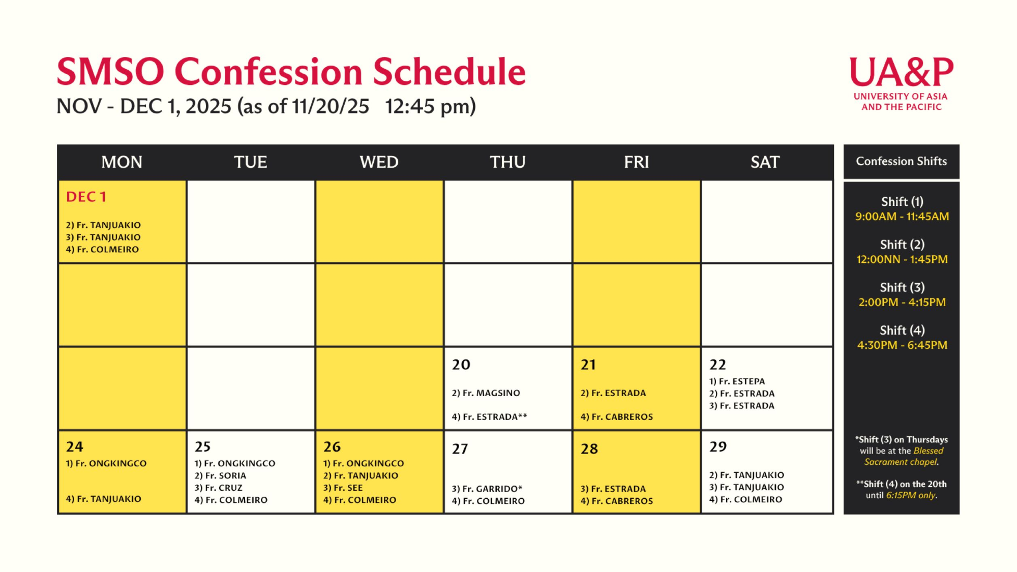 Chaplain Adviser – UA&P School of Law, School of Politics and Governance, School of Sciences, Engineering, and Technology